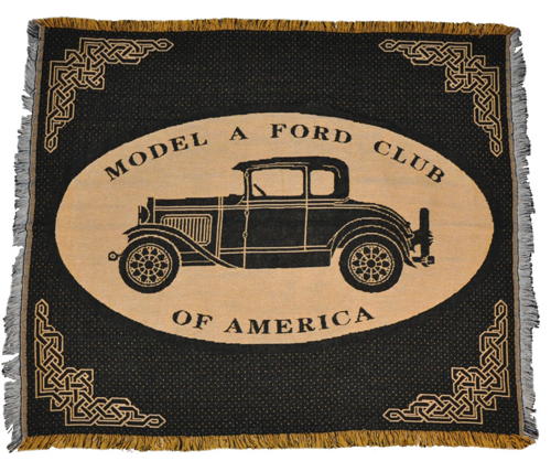 Afghan 48"x60" Black and Gold with MAFCA logo, soft cotton. Great gift for any Model A. Made in the USA